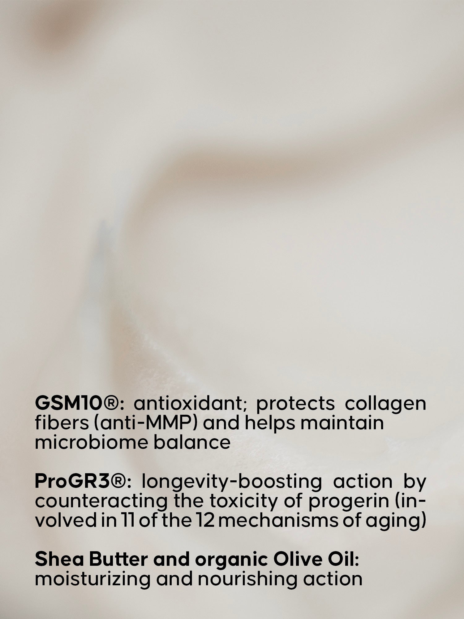 This patent pending* complex boosts the longevity by counteracting the progerin toxicity and its accumulation and slows the signs of aging fighting 11 of the 12 mechanisms of aging Based on 20 years of research on progeria, this complex combines three plant-based ingredients: resveratrol from vine shoots, apigenin from chamomile flowers and catechin from green tea leaves *Patent N°EP22315060.8
